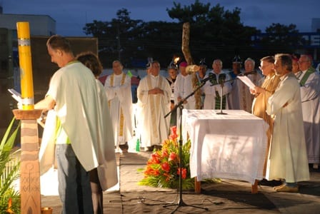 O clima era de animação e alegria, apesar da surpreendente queda de temperatura que deixou a maioria do povo a tremer de frio. No estádio, o arcebispo de Porto de Velho, dom Moacyr Grechi, presidiu a missa, ladeado pelo presidente da CNBB,dom Geraldo Lyrio Rocha, e inúmeros outros bispos e padres.