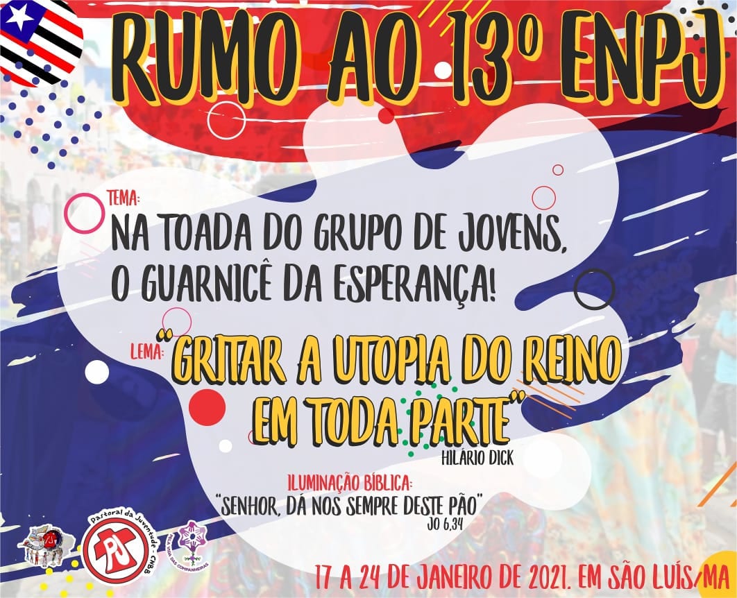 No 12º ENPJ, realizado em Rio Branco, Acre, os pejoteiros retornaram à ancestralidade indígena com o uso da palavra huni kuin “Txai”, agora a PJ do Brasil se volta para a sua base e bebe da mística dos grupos de jovens – palavra-chave do Jubileu em 2021 – e da cultura folclórica maranhense para definirem o tema do encontro: Na toada do grupo de jovens, o guarnicê da esperança