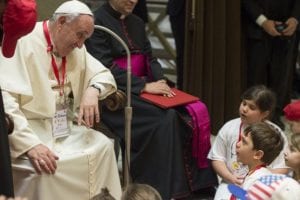 Centenas de crianças pegam trem ou navio para ver o Papa Francisco no Vaticano