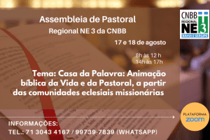 Regional Nordeste 3 da CNBB realizará a Assembleia de Pastoral nos dias 17 e 18 de agosto