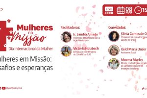 Organizada pela Comissão Episcopal Pastoral para a Ação Missionária e Cooperação Intereclesial da CNBB, a live será às 15h, com transmissão pelo canal do Youtube da CNBB. O bate papo desta edição será com a presidente do CNLB, Sônia Gomes, a assistente social, Gelci Maria Unser e a presidente do Conselho Nacional de Institutos Seculares, Moema Muricy