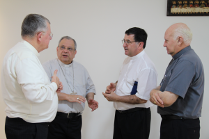 O encontro protocolar ao secretário-geral da Conferência, dom Joel Portella Amado, se deu por ocasião da visita canônica feita às áreas missionárias da congregação e foi oportunidade de reencontro com o bispo de São Miguel Paulista (SP), dom Algacir Munhak, que é religioso scalabriniano e participa do Encontro de Bispos Novos realizado nesta semana