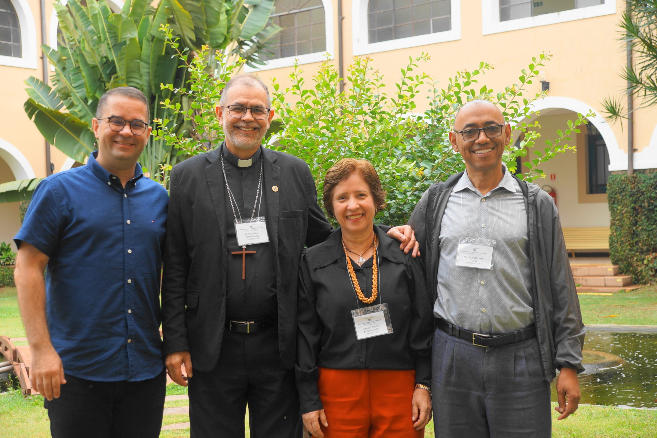 Frei Felipe Marques (Pastoral Litúrgica), dom Hernaldo, Raquel Tonini (Espaço Litúrgico) e padre Jair Costa (Música Litúrgica) | Foto: divulgação