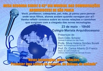 A Pastoral da Comunicação da arquidiocese de São Paulo vai realizar, no próximo dia 23, das 10h às 12h, no Colégio Marista Arquidiocesano, na Vila Mariana, uma Mesa