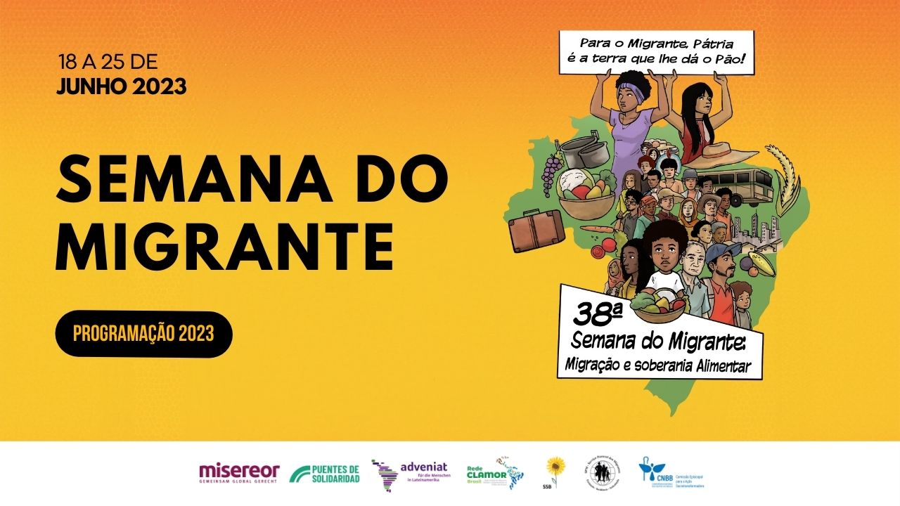“Migração e Soberania Alimentar” é o tema da 38ª Semana do Migrante que ocorre de 18 a 25 de junho de 2023. Já o lema “Para o Migrante, Pátria é a terra que lhe dá o Pão”, uma referência e comunhão com a Campanha da Fraternidade deste ano, que trabalhou: “Fraternidade e Fome”. A abertura da Semana será com a missa no dia 18 de junho, às 12h (horário de Brasília), no Santuário Nacional de Aparecida, em Aparecida (SP).