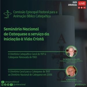 O seminário ainda vai retomar a reflexão do Documento 107 da Conferência, aprovado pelos bispos em 2017, intitulado “Iniciação à Vida Cristã: itinerário para formar discípulos missionários”. A iniciativa acontece de forma online a partir das 20h nas redes sociais da CNBB (@cnbbnacional) e da Catequese do Brasil (@catequesedobrasil).
