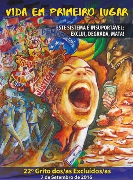 “Este sistema é insuportável: exclui, degrada, mata!” é lema da 22ª edição do Grito dos Excluídos, que tem como tema “Vida em primeiro lugar”. A mobilização, com auge em 7 de Setembro, dia da Independência do Brasil, questiona e denuncia as várias formas de desigualdades do país, apontando qual o real papel do Estado diante das exclusões.