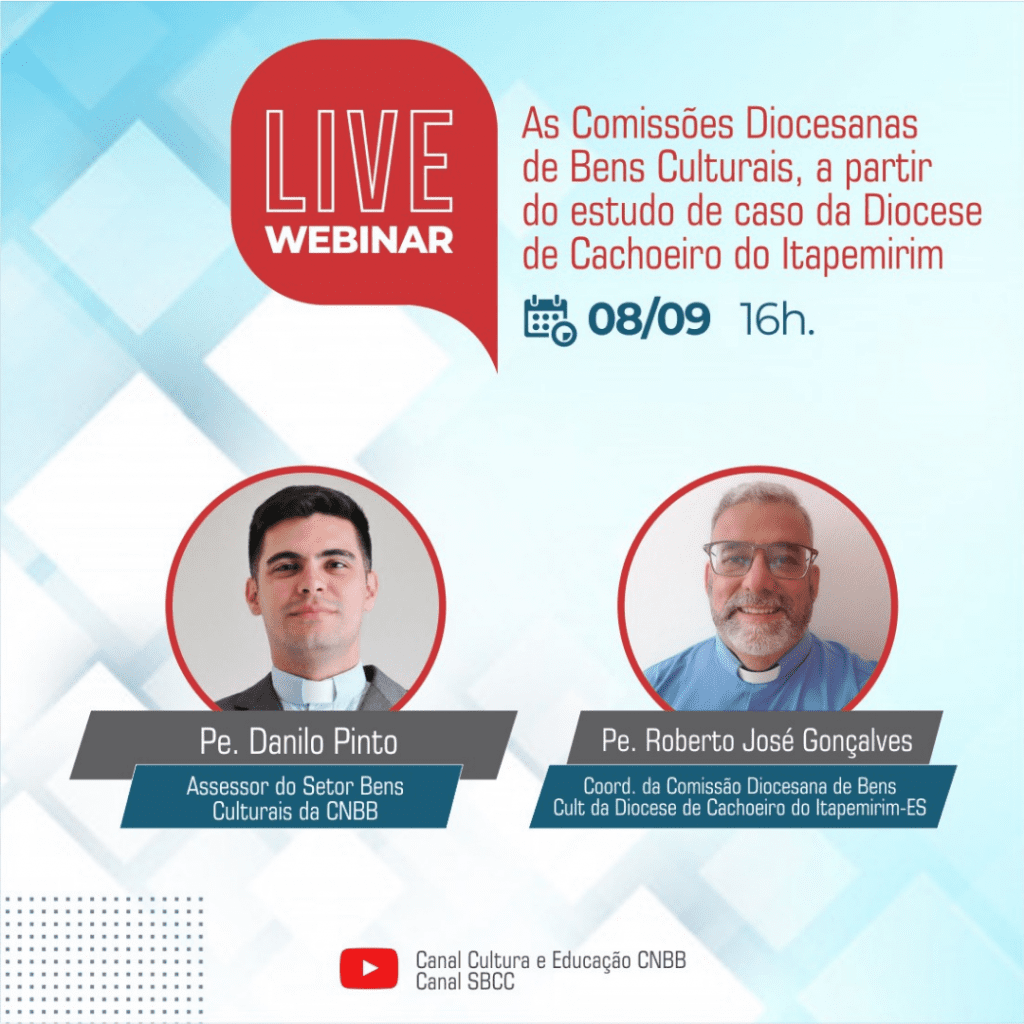 A live desta semana recebe o coordenador da Comissão Diocesana de Bens Culturais da Diocese de Cachoeiro do Itapemirim (ES), padre Roberto José Gonçalves e o assessor do Setor Universidades e Bens Culturais da CNBB, padre Danilo Pinto.