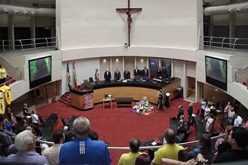 “É na Sagrada Escritura que buscamos a motivação que nos leva a querer uma cidade melhor, a colaborar para que, de fato, haja água de qualidade para todos, para que a questão do lixo seja solucionada de maneira adequada, para que o esgoto receba tratamento adequado”, disse o arcebispo de Florianópolis, dom Wilson Tadeu Jönck, durante a sessão em homenagem a Campanha da Fraternidade Ecumênica (CFE) 2016, ocorrida na Assembleia Legislativa de Santa Catarina, no dia 23 de fevereiro.