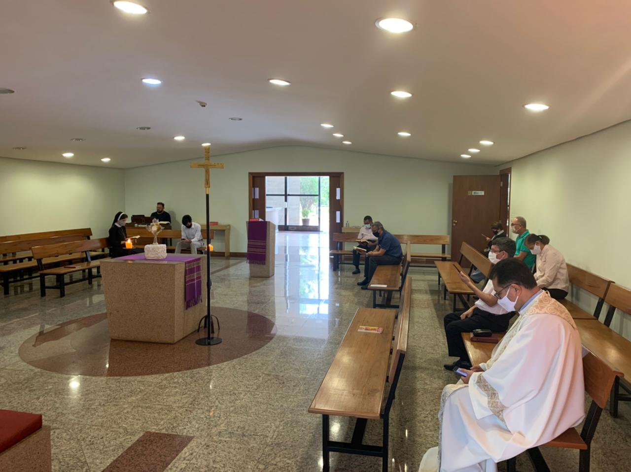 Na manhã desta quinta-feira, 18 de março, os assessores das Comissões Episcopais Pastorais da CNBB participaram de um momento de espiritualidade, na sede da CNBB, que contou com uma reflexão conduzida pelo padre Djalma Antoni, diretor do Centro Cultural Missionário (CCM) e celebração eucarística presidida por dom Joel Portella Amado, secretário-geral da CNBB.