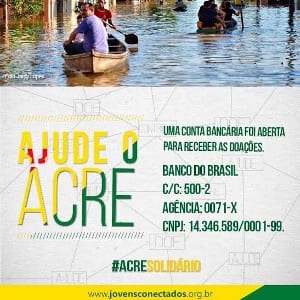 Nestes momentos em que nosso Estado do Acre, e em especial, a capital Rio Branco, passa por uma situação difícil e trágica, pela enchente do rio Acre, apelamos à solidariedade de todos. A cheia do rio já atingiu 53 bairros e mais de 87 mil pessoas foram atingidas. Muitas crianças, idosos, mães gestantes, estão sofrendo as consequências das águas. Muitos já perderam casa, móveis, roupas… E ainda falta o pior, a pós-enchente, com a sujeira, lama, doenças e a volta para as casas meio destruídas e acabadas. É muito sofrimento e tristeza ao mesmo tempo! Sente-se muita impotência diante de semelhante situação!