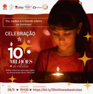 No próximo sábado, 28 de novembro, às 19h30 acontece, por meio de videoconferência, o momento celebrativo da campanha 10 Milhões de Estrelas. A data marca o início do tempo litúrgico do Advento. A campanha é uma iniciativa da Cáritas Brasileira em todo o país. A articulação no Distrito Federal conta com as parcerias da Conferência Nacional dos Bispos do Brasil (CNBB), Conferência dos Religiosos do Brasil (CRB), Grupo Ecumênico de Brasília (GEB) e Cáritas Arquidiocesana de Brasília.