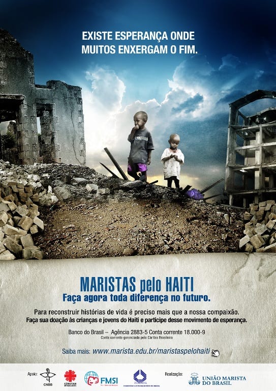 Na semana passada, a União Marista do Brasil (Umbrasil) abriu a Campanha Maristas pelo Haiti. O objetivo é levantar fundos para ajudar as vítimas do terremoto que devastou aquele país, em janeiro deste ano. Para colaborar, bastar fazer um depósito de qualquer valor na conta corrente 18.000-9, agência 2883-5, do Banco do Brasil. A conta é exclusiva da campanha, gerenciada diretamente pela Cáritas Brasileira, que encaminhará os recursos aos projetos do Haiti.