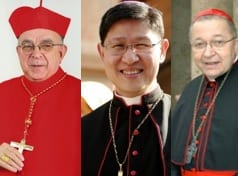 Foram nomeados também para compor a presidência do Sínodo Extraordinário: o arcebispo de Paris, cardeal André Vingt-Trois (à direita), e o arcebispo de Manila, cardeal Luis Antonio Tagle (ao centro). Os três cardeais serão responsáveis por acompanhar a preparação dos trabalhos do Sínodo que tratará dos desafios pastorais da família, no contexto da evangelização.