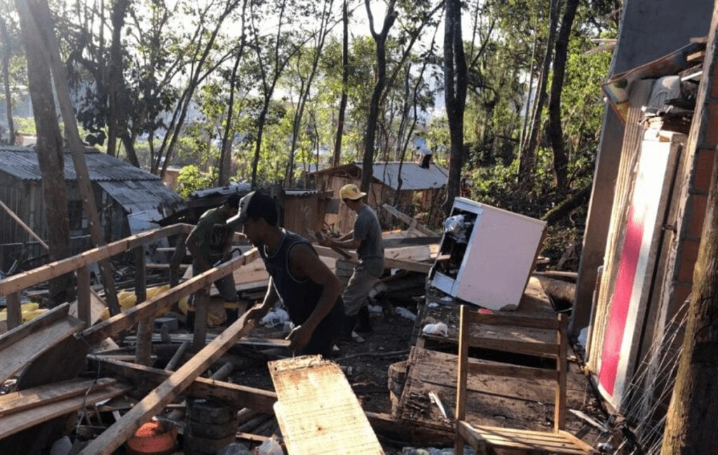 “Foi um susto muito grande. Nunca passamos por isso aqui na nossa região. Quando vi, estava vindo lá do morro aquela nuvem branca com barulhos da mata caindo e derrubando tudo. Quando o vento chegou aqui foi pior ainda, as árvores começaram a cair em cima das nossas casas e nossa principal preocupação era com as crianças”. Foram com essas palavras que a dona Benilda Aparecida Sampaio, uma das líderes da ocupação urbana Mestre Moa, relatou os rastros deixados pelo Ciclone na comunidade localizada no município da Palhoça (SC), na Grande Florianópolis.