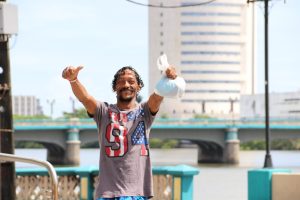 Assim como Rebeca, do outro lado do casarão 34, agora a Casa do Pão, Índio, como prefere ser chamado, que está em situação de rua há 36 anos, sai aos pulos de alegria, conseguiu tomar seu banho matinal, ganhou roupa e calçados e se encaminhou para o café da manhã, disse que ia cantar um rap.