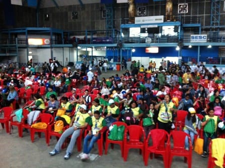 Cerca de 3 mil jovens de diferentes partes do Brasil participam das catequeses na quadra da escola de samba, Unidos de Vila Isabel, no Rio de Janeiro, que cedeu o espaço para os encontros da Jornada Mundial da Juventude. Dom Luiz Henrique, bispo auxiliar do Rio de Janeiro, foi o catequista da manhã desta quinta-feira, 25 de julho. “Ser discípulos de Cristo” foi o tema da catequese. “Depois de tomar café da manhã com o Papa Francisco, trago a benção dele para vocês”, disse o bispo, para alegria dos jovens presentes. Dom Luiz iniciou lembrando que todos são escolhidos e chamados por Deus. “Temos, assim, um compromisso missionário de viver a fé com alegria”. E destacou o testemunho dado pelos jovens no dia a dia.