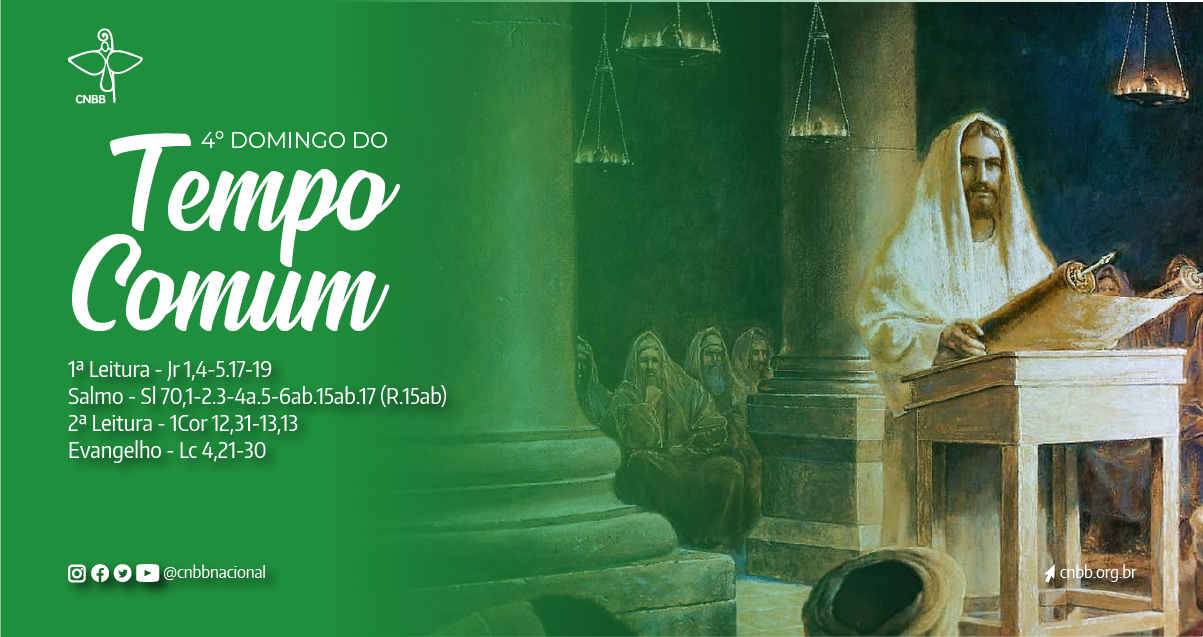 A liturgia do 4º Domingo do Tempo Comum traz as Palavras do Senhor ao profeta Jeremias: “Antes de formar-te no ventre materno, eu te conheci; antes de saíres do seio de tua mãe, eu te consagrei e te fiz profeta das nações”. Na segunda leitura, o hino da caridade, da primeira Carta aos Coríntios.