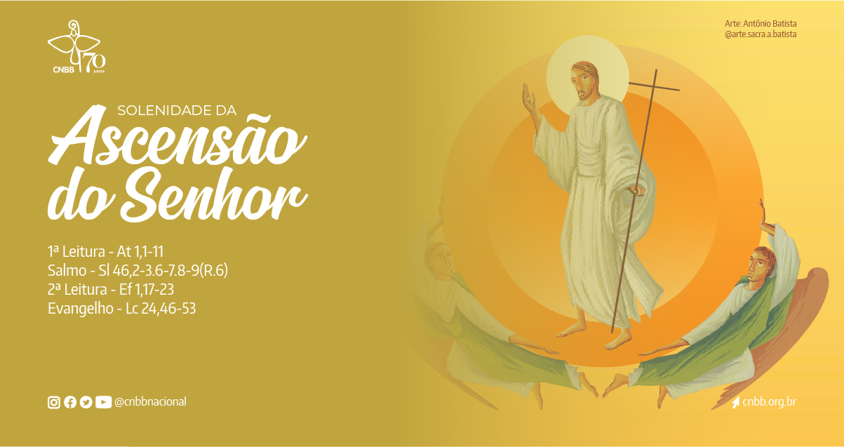 A Igreja celebra no próximo domingo, 29 de maio, a Solenidade da Ascensão do Senhor. Jesus que sobe aos céus e chama os membros de seu corpo, o povo de Deus, a participar da sua glória. A Comissão Episcopal Pastoral para a Liturgia da Conferência Nacional dos Bispos do Brasil (CNBB) oferece o roteiro Celebrar em Família para a ocasião.