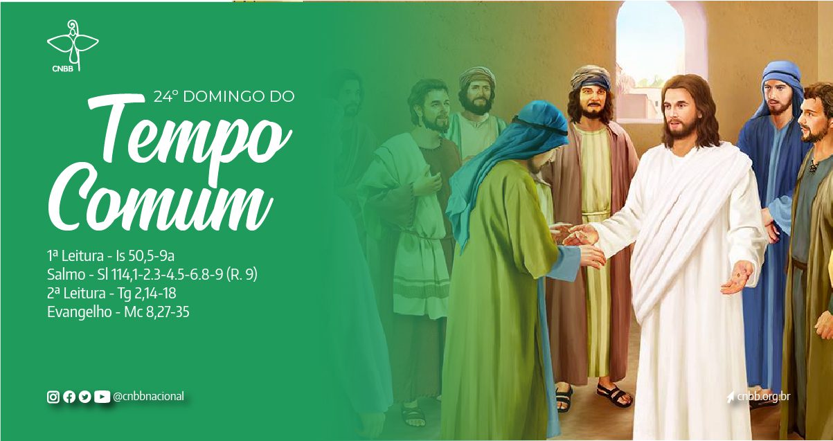 No Evangelho (Mc 8,27-35), Jesus exorta: “‘Se alguém me quer seguir, renuncie a si mesmo, tome a sua cruz e me siga. Pois quem quiser salvar a sua vida, vai perdê-la; mas quem perder a sua vida por causa de mim e do Evangelho'”.