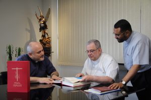 Antes de chegar à Santa Sé, o material diagramado pela Edições CNBB foi apresentado para o secretário-geral da CNBB, dom Joel Portella Amado, e o subsecretário-adjunto geral, padre Patriky Samuel Batista. Na segunda-feira, 5 de dezembro, dom Joel pôde conferir como a nova edição do Missal Romano está organizada e outros detalhes da diagramação.