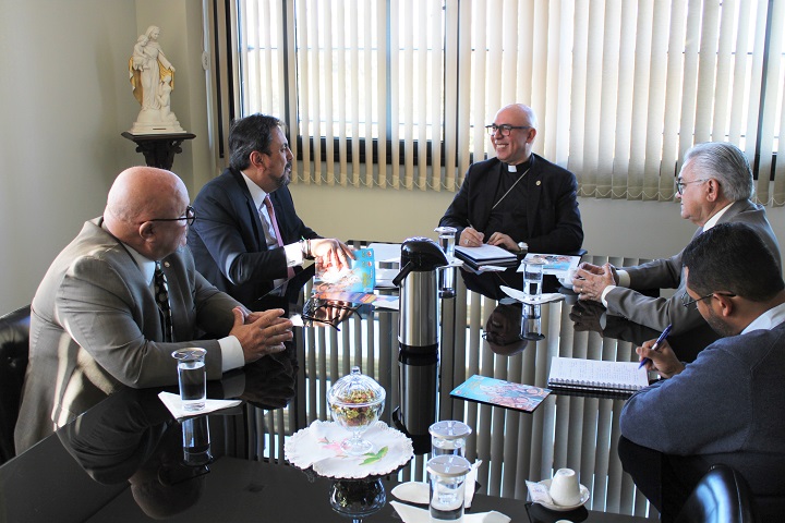 O bispo auxiliar da arquidiocese de Brasília (DF) e secretário-geral da Conferência Nacional dos Bispos do Brasil (CNBB), dom Ricardo Hoepers, recebeu, na manhã desta quarta-feira, 28 de julho, o representante do Conselho Nacional do Ministério Público (CNMP) e presidente da Comissão da Saúde do CNMP, Jayme Martins de Oliveira Neto, o secretário-executivo do Conselho Nacional de Secretários de Saúde (Conass), Jurandi Frutuoso, e o membro auxiliar da Comissão de Saúde no CNMP, o promotor de Justiça do Distrito Federal, Jairo Bisol.