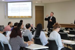 A formação buscou esclarecer o que é Compliance. Trata-se, segundo o conceito apresentado, como a estrutura implementada para mitigar o risco de sanções, perdas financeiras ou danos à reputação e imagem sofridos como resultado de falhas no cumprimento de aplicações de leis, regulamentações, normas e procedimentos, código de conduta e das boas práticas impostas pelos órgãos reguladores aplicáveis à organização.