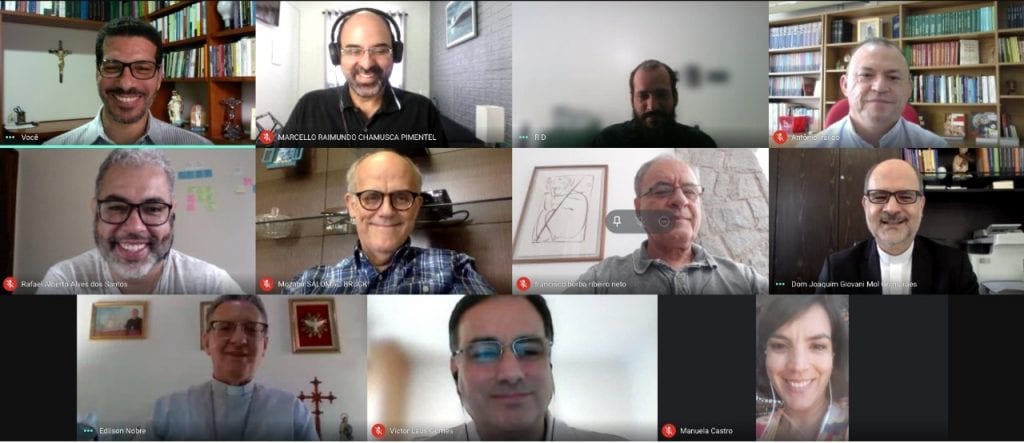 Participaram da reunião o dom Joaquim Giovani Moll, presidente da Comissão para a Comunicação da CNBB, dom Edilson Soares Nobre, o diretor da faculdade Paulus de Tecnologia e Comunicação, padre Antônio Iraildo Alves Brito, padre Tiago Silva e Manuela Castro, assessores na Comissão de Comunicação da CNBB, o professor Francisco Borba, coordenador do Núcleo Fé e Cultura da PUC SP, representando a PUC na reunião, os professores Vitor Laus e Robson, da faculdade de Comunicação da Universidade Católica de Brasília e o diretor da faculdade de Comunicação e Artes da PUC Minas, Mozair Bruck e Marcello Raimundo Chamuska Pimentel, da PUC de Salvador (BA).
