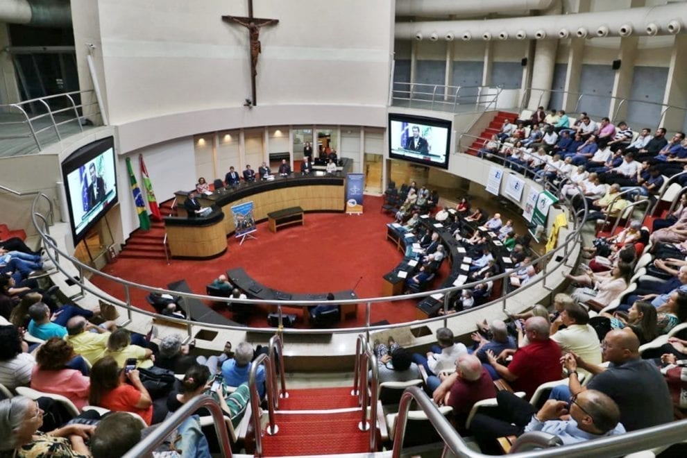“Regional Sul 4 da CNBB: uma história de comunhão, fraternidade, vida, dom e compromisso” – Para celebrar os 50 anos de história da Igreja em território catarinense, organizada em regional da Conferência Nacional dos Bispos do Brasil (CNBB), e o tema proposto pela Campanha da Fraternidade 2020, a Assembleia Legislativa do Estado de Santa Catarina (ALESC), realizou na noite de ontem, 02 de março, uma Sessão Especial no plenário principal da casa legislativa.