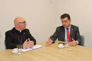O bispo auxiliar de Brasília (DF) e secretário-geral da Conferência Nacional dos Bispos do Brasil (CNBB), dom Ricardo Hoepers, recebeu na tarde da terça-feira, 4 de julho, o representante do Ministério da Educação, Marcelo Bregagnoli, para discutir a possibilidade de ampliação do Projeto “Capacita” desenvolvido pelo Instituto Federal do Sul de Minas em parceria com as dioceses mineiras de Pouso Alegre, Guaxupé e Campanha.