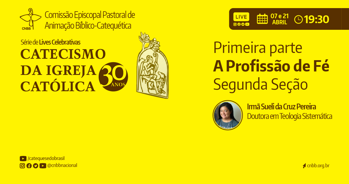 A Comissão Episcopal Pastoral para a Animação Bíblico-Catequética da Conferência Nacional dos Bispos do Brasil (CNBB) realiza, nesta quinta-feira, 07 de abril, às 19h30, a primeira parte da live “A profissão de fé” – segunda seção. A série de lives é para celebrar os 30 anos de publicação do Catecismo da Igreja Católica.