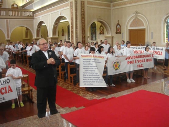 Com faixas e cartazes, os participantes sairão ao mesmo tempo, às 10h, do brique do bairro Mauá (feira do produtor) e Praça da Igreja Evangélica Três Reis Magos, e se reunirão, às 10h30, em frente à Praça da Igreja Matriz Nossa Senhora da Piedade, paróquia onde o monsenhor Inácio José Schuster, de 41 anos, foi baleado na tarde de quarta-feira 30, após uma tentativa de assalto que o deixou ferido com um tiro. As grades e as câmeras de vigilância não inibiram a ação do assaltante, que entrou na secretaria da paróquia sem se preocupar em mostrar o rosto.
