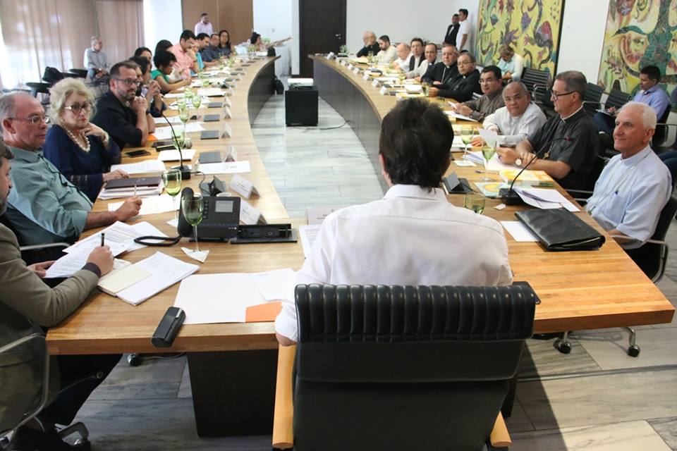 A primeira reunião, de 2018, do Conselho Episcopal Regional (CONSER) do regional Nordeste 1 teve início nesta segunda- feira, dia 25 de junho, pela manhã, no Palácio da Abolição, em Fortaleza, onde os bispos das dioceses do Ceará se reuniram com o governador Camilo Santana. A pauta principal foi a análise das propostas apresentadas, pela conferência, no documento sobre Segurança Pública no Estado.