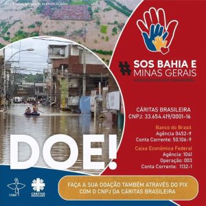 As doações podem ser feitas pelas contas da Cáritas Brasileira: