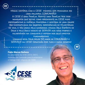 O assessor da Comissão Episcopal para o Ecumenismo e o Diálogo Inter-religioso, padre Marcus Barbosa, participa dos eventos em comemoração aos 50 anos da CESE. Padre Marcus foi presidente da CESE por dois mandatos (2015-2018 e 2019-2021).