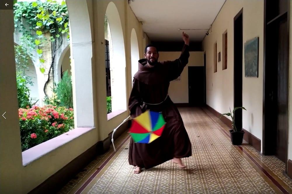 A cena inusitada abre o clipe lançado por membros da Ordem dos Frades Menores de cinco conventos do Nordeste. O vídeo, que em menos de 24 horas viralizou nas redes sociais, é uma paródia da música de José Mário Chaves (1943-2018) imortalizada na voz do cantor Alceu Valença, e mostra situações rotineiras dos religiosos para fazer um pedido: por favor, fica em casa.