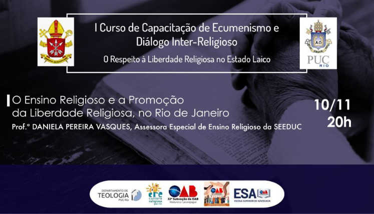 Com o objetivo de contribuir para a capacitação de profissionais que lidam ou, potencialmente, podem lidar com situações conflitivas e intensas, ligadas à diversidade religiosa, na rotina de suas atividades laborais, o I Curso de Capacitação em Ecumenismo e Diálogo Inter-Religioso ocorrerá nos dias 3, 10, 17 e 24 de novembro, das 20h às 21h45, na modalidade remota. O tema desta primeira edição é “O Respeito à Liberdade Religiosa no Estado Laico”.