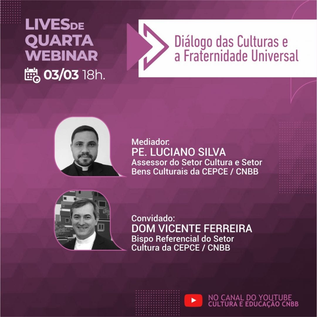 O Setor Cultura e Bens Culturais da Comissão Episcopal Pastoral para Cultura e Educação da Conferência Nacional dos Bispos do Brasil (CNBB), promove nesta quarta-feira, 3 de março, o webinar com a temática “Diálogo das Culturas e a Fraternidade Universal”.