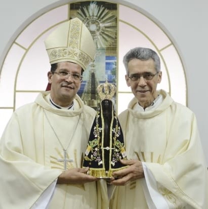 Na oportunidade, o reitor do Santuário, padre Domingos Sávio, entregou ao padre Antônio David, de Leopoldina, a imagem de Nossa Senhora Aparecida, que por ocasião da comemoração dos 300 anos de sua aparição irá percorrer as paróquias das dioceses do Brasil.