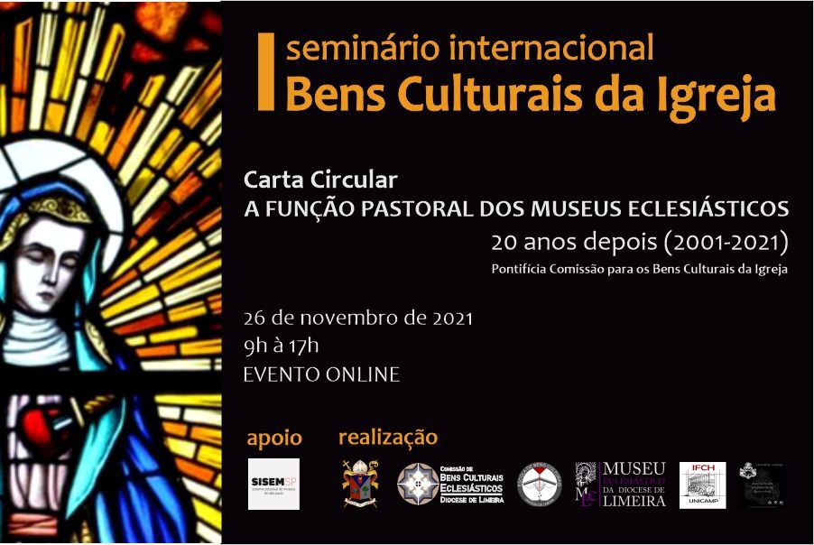 É por esta razão que a diocese de Limeira, por meio de seu Museu Eclesiástico, organiza o I Seminário Internacional Bens Culturais da Igreja, com correalização do Instituto de Filosofia e Ciências Humanas da Universidade Estadual de Campinas (IFCH/Unicamp) e do Ornamenta – Grupo de Estudos Avançados de Arte Sacra no Brasil (Unicamp), com o apoio do Sistema Estadual de Museus de São Paulo (SISEM/SP). O evento ocorrerá de modo virtual no dia 26 de novembro, das 9h às 17h, e reúne pesquisadores do Brasil e de Portugal que lidam com a temática dos museus eclesiásticos.