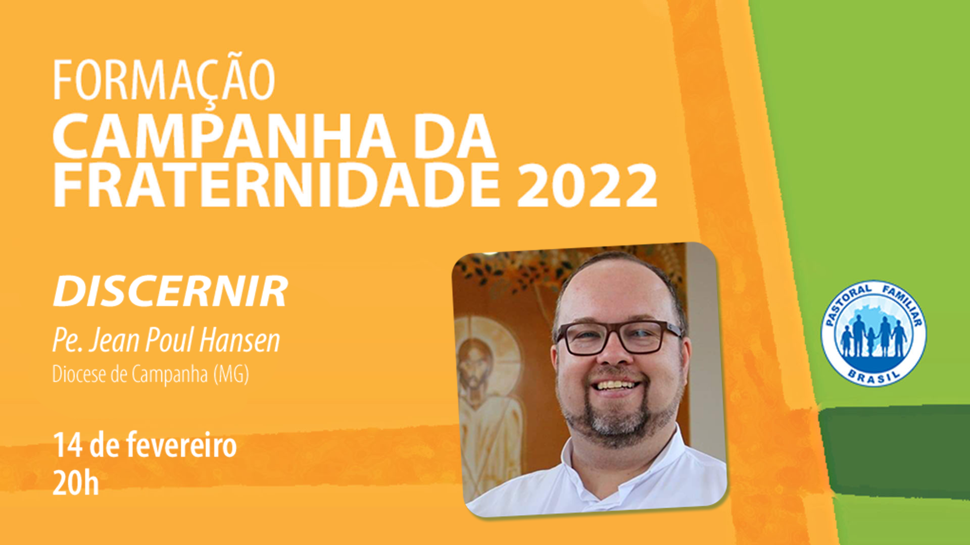 O assessor da segunda live de formação será o padre da diocese de Campanha (MG) Jean Poul Hansen. Ele abordará os elementos do ponto 3 do Texto-Base da CF 2022 relativos ao “discernimento” com apresentação de reflexões que buscarão iluminar a realidade à luz dos critérios da fé e da tradição cristã.