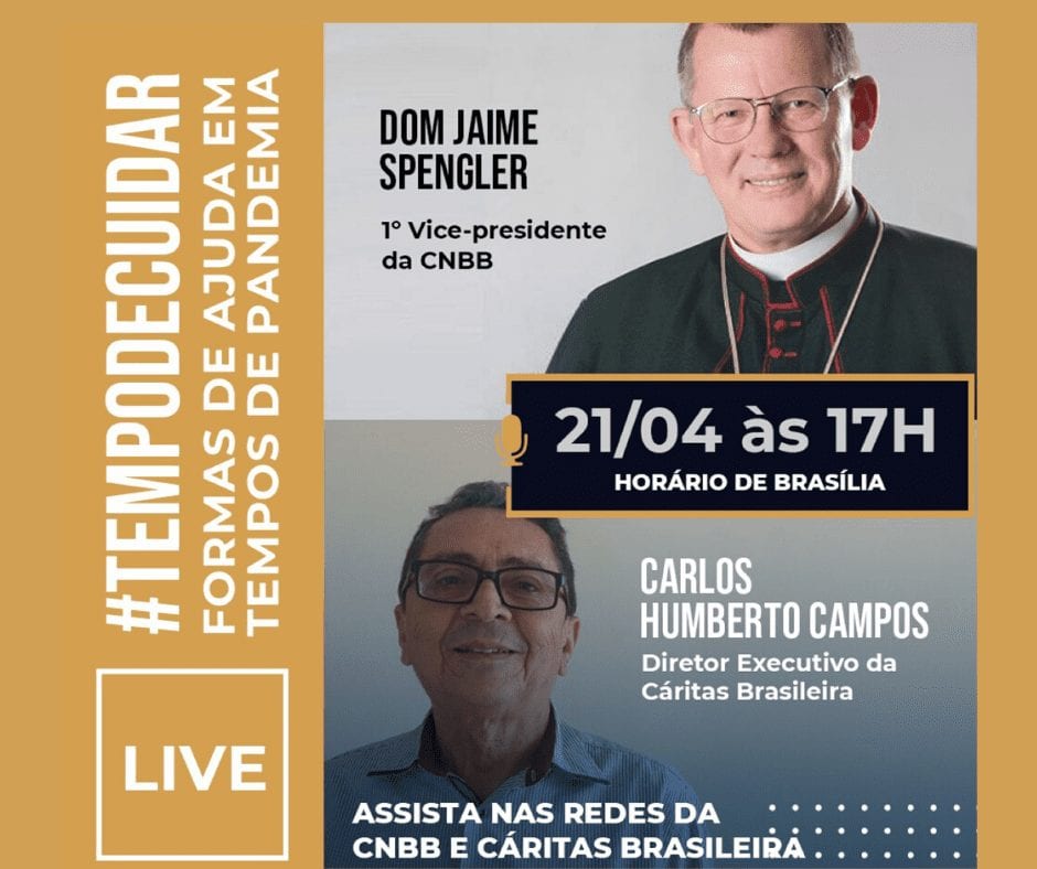 Com o tema “Formas de ajudar em tempos de pandemia”, o arcebispo de Porto Alegre (RS) e primeiro vice-presidente da Conferência Nacional dos Bispos do Brasil (CNBB), dom Jaime Spengler, e o diretor executivo da Cáritas Brasileira, Carlos Humberto Campos, participaram nesta terça-feira, às 17h, de mais uma live nas redes da CNBB e Cáritas Brasileira e no canal do Youtube da CNBB sobre a Ação Solidária Emergencial da Igreja no Brasil, que tem como lema ‘É tempo de cuidar’.