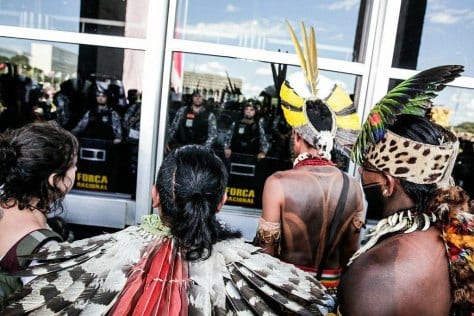 Participante da mobilização e membro da coordenação da Articulação dos Povos Indígenas do Brasil (Apib), Dinamã Tuxá apontou como um dos principais ataques impostos pelo atual governo aos direitos indígenas o Parecer 001/20017 da Advocacia Geral da União (AGU), que aplica às demarcações, entre outros pontos, a tese do Marco Temporal, pela qual os povos indígenas só teriam direito às terras ocupadas em 5 de outubro de 1988, data de promulgação da Constituição Federal.