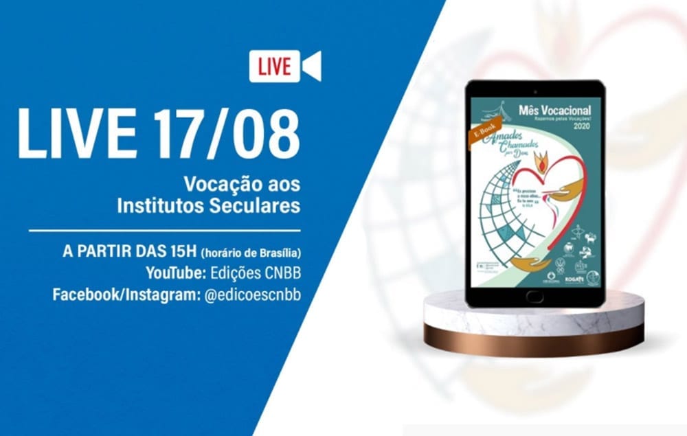 A Edições CNBB abre a terceira semana do mês vocacional, quando se reflete sobre a vocação à vida consagrada, com uma live sobre “Vocação aos Institutos Seculares”. Os convidados são o arcebispo de Campinas (SP), dom João Inácio Müller, e a presidente da Conferência Nacional dos Institutos Seculares (CNIS), Aparecida de Guadalupe Cafaro. Acompanhe o bate-papo nas redes sociais da Edições CNBB, a partir das 15h, desta segunda-feira, 17 de agosto.