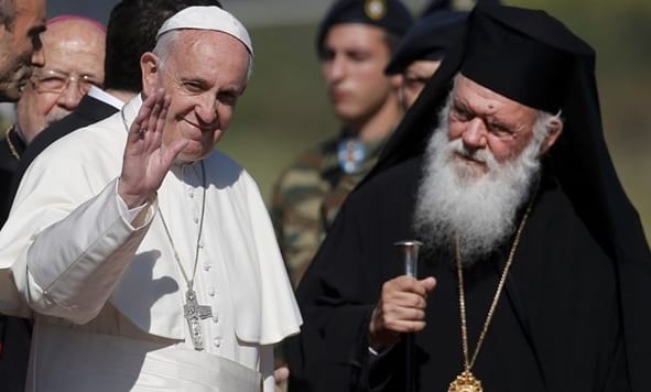 Francisco iniciou visita apostólica à Grécia no sábado, 16. O avião papal aterrissou no aeroporto de Mitilene, em Lesbos, logo pela manhã. Na chegada foi saudado pelo patriarca ecumênico de Constantinopla, Bartolomeu, e por Sua Beatitude Hieronymos, arcebispo de Atenas.