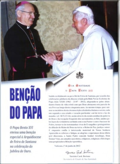 A celebração eucarística contou com a presença de 11 bispos e mais de 60 sacerdotes. Um dos pontos altos da cerimônia e marcado de forte emoção foi a leitura da Bênção do Papa Bento XVI concedida ao povo fiel da Arquidiocese de Feira de Santana.