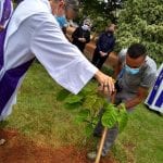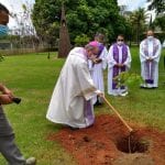 O bispo de Colatina (ES), dom Wladimir Lopes Dias, após a missa de Finados, abençoou as mudas que foram plantadas pela Pastoral da Ecologia da diocese em seguida.