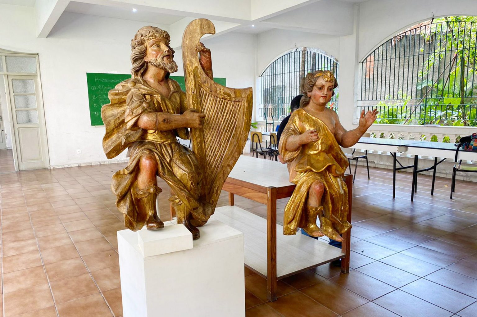 A primeira escultura recuperada foi a da a rainha consorte de Israel – Betsabá – esposa do rei Davi e mãe do rei Salomão. Agora foi a vez da imagem do Rei Davi. Ambas as obras foram executadas na primeira metade do Século XVIII e possuem características do barroco joanino, em madeira policromada e douramento, com cerca de 1,20m de altura. Juntas, essas imagens formam um conjunto escultórico pertencente ao altar-mor da igreja histórica localizada no bairro Pilar em Duque de Caxias (RJ).