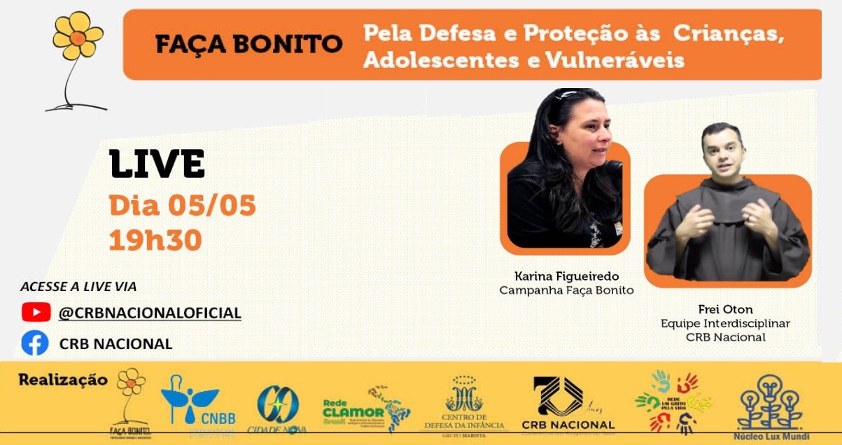 Acontece dia 5 de maio (sexta-feira), a partir das 19h30, uma live intitulada “Faça Bonito: pela defesa e proteção às crianças, adolescentes e vulneráveis”. A iniciativa faz parte de uma série de ações programadas para o mês de maio dedicado à campanha “Faça Bonito”.