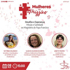 A Comissão Episcopal Pastoral para Animação Missionária e Cooperação Intereclesial da Conferência Nacional dos Bispos do Brasil (CNBB) realiza na próxima segunda-feira, 8 de agosto, mais uma edição da live “Mulheres na Missão”. Neste mês vocacional a temática refletida será “Missão e Santidade no Magistério do Papa Francisco”.
